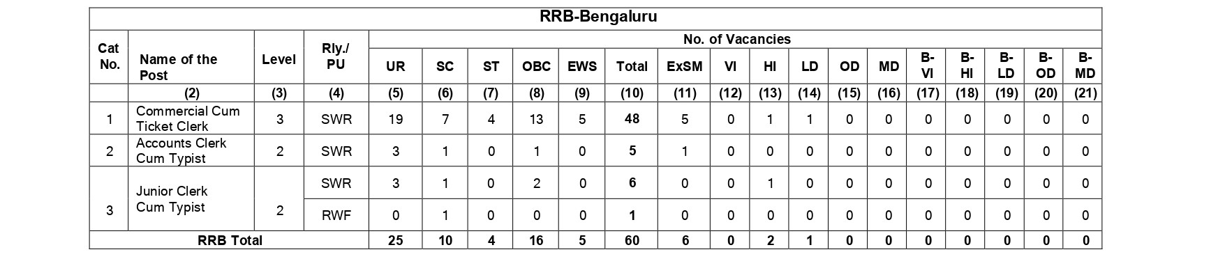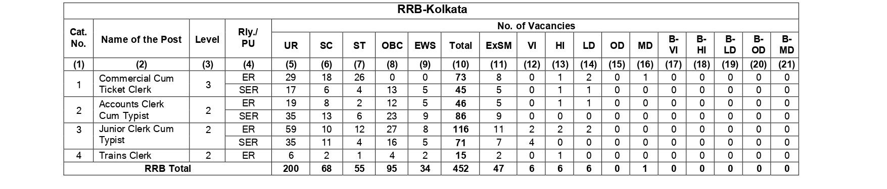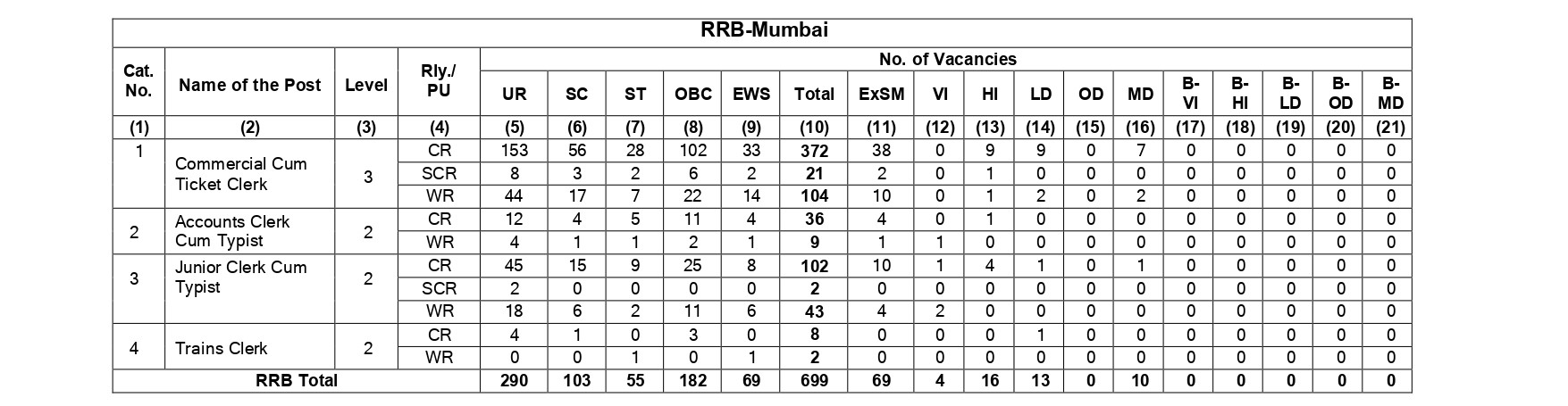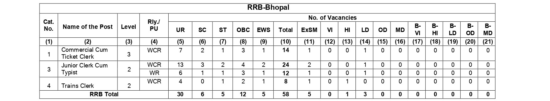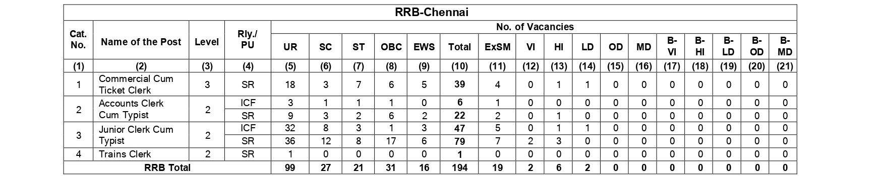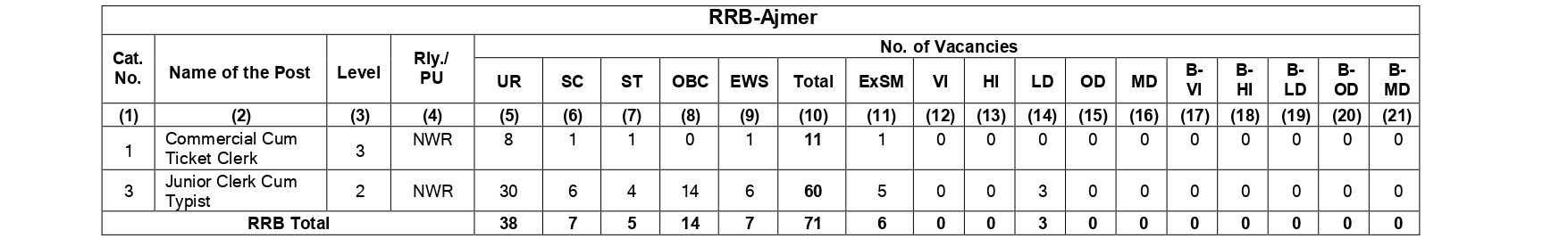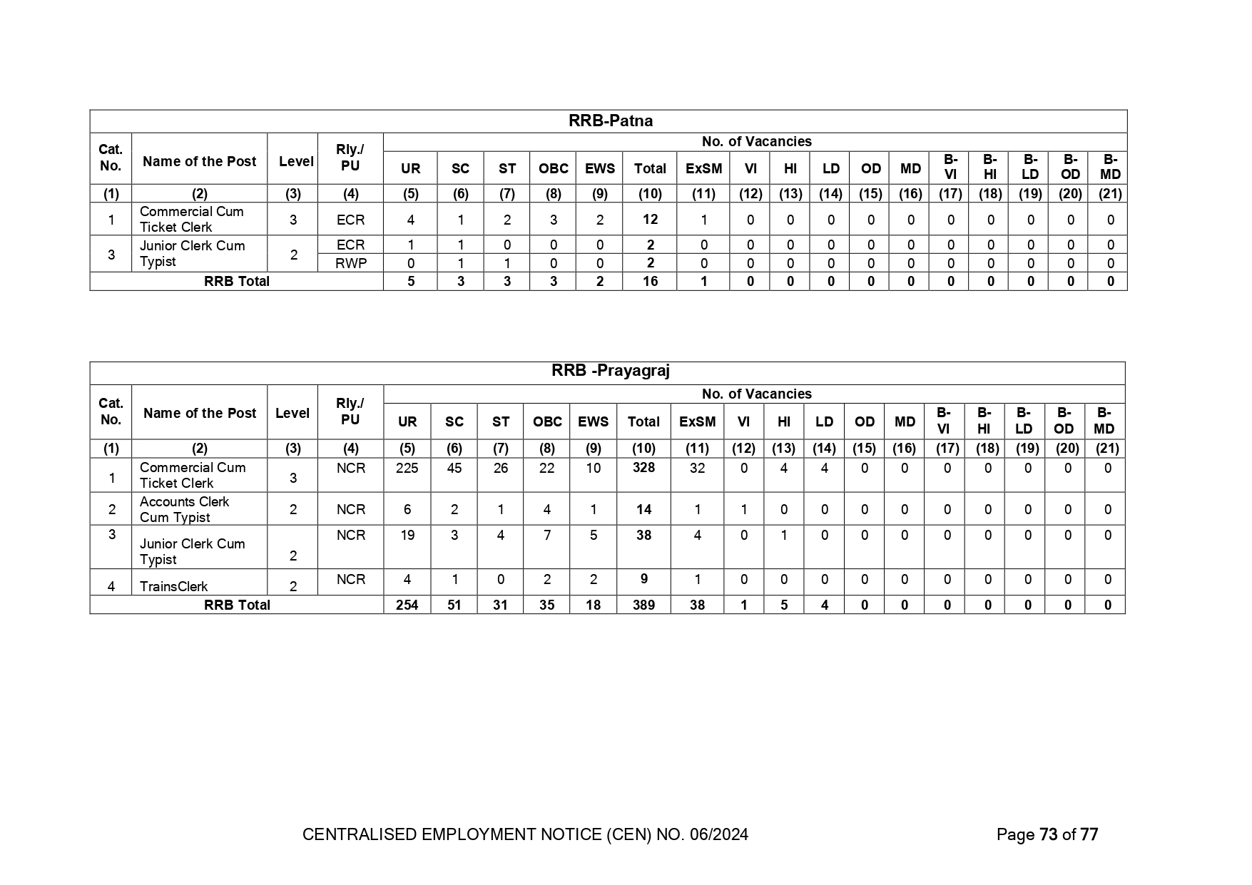 Each of the RRBs all over India has its own vacancy list. Candidates who are aiming at any particular posts should go through the vacancy list in different RRBs before submitting the application for Non-Technical Popular Categories in Indian Railways. The detailed list of vacancies are as in the below tables