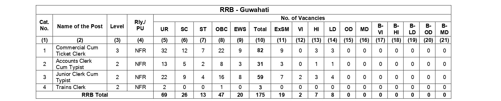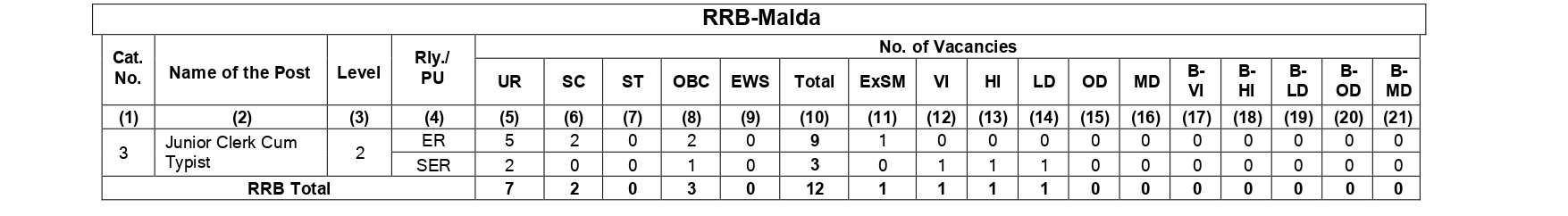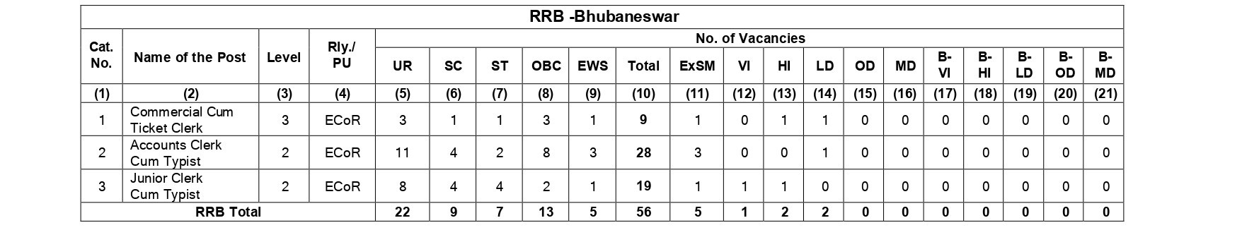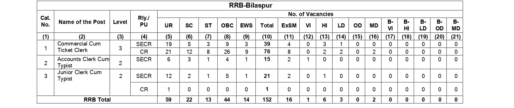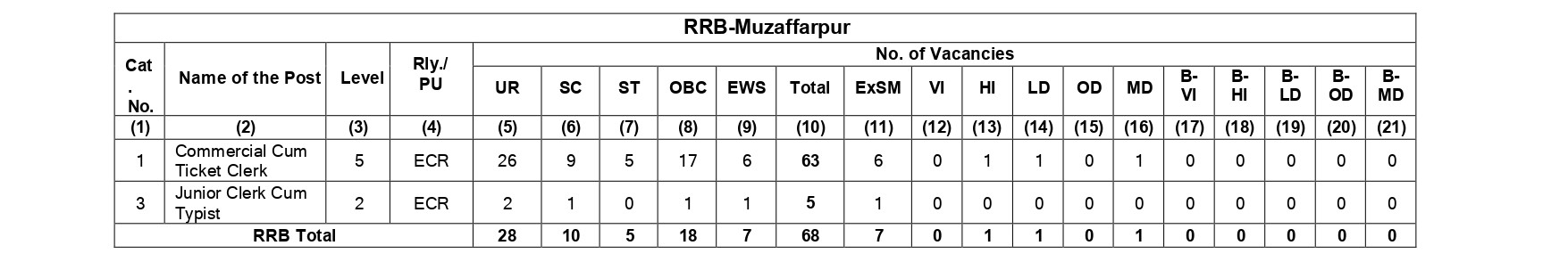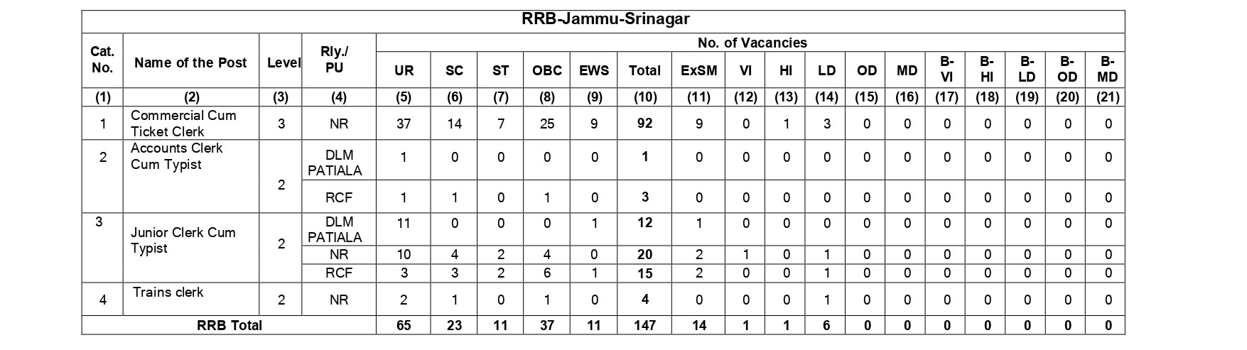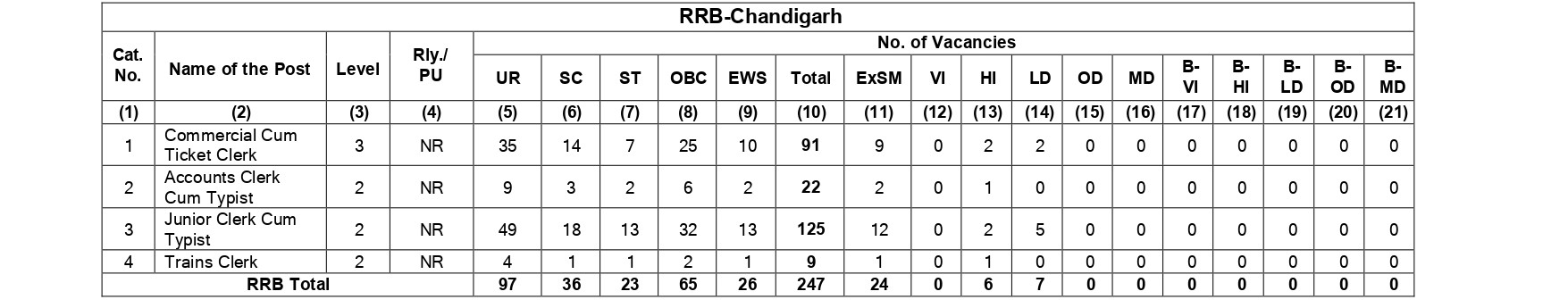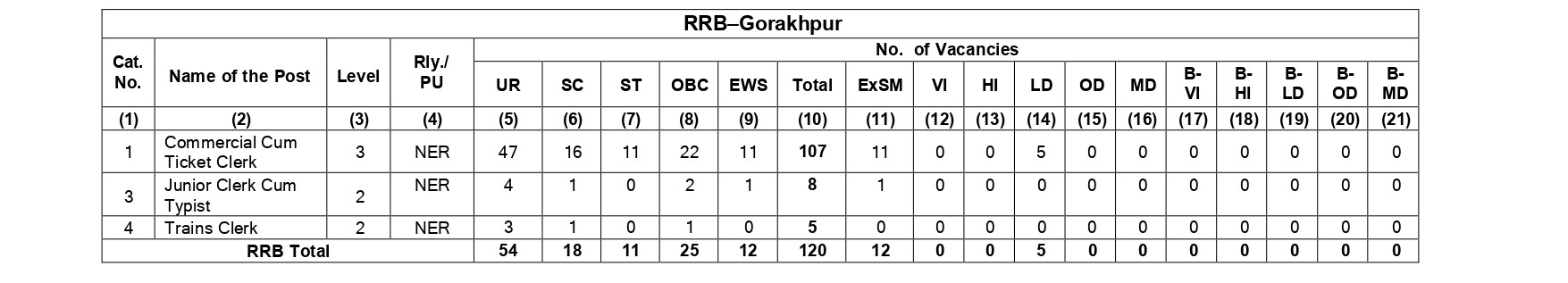 Each of the RRBs all over India has its own vacancy list. Candidates who are aiming at any particular posts should go through the vacancy list in different RRBs before submitting the application for Non-Technical Popular Categories in Indian Railways. The detailed list of vacancies are as in the below tables