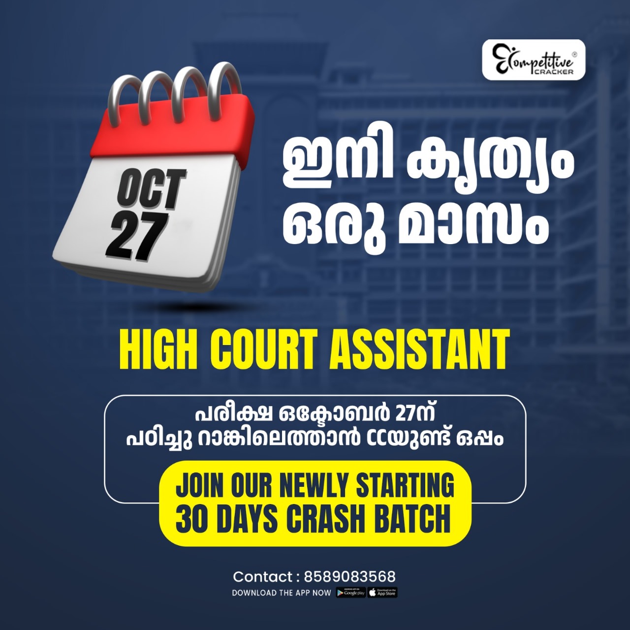Engage in the best online coaching for the next few days. Make the upcoming days fruitful by learning from the best syllabus-oriented class for Kerala High Court. The leading faculties and mentors of Competitive Cracker are committed at providing you the best learning experience. Register now and learn from your mobile or other internet connected device without the hassles of an offline class room. Yet you will get all the perks of any other classroom in this online platform. The High Court Assistant online course provided by Competitive Cracker have dedicated writing exercises corrected and commented by the faculties and individually intimate the corrections to the students. Hop in this online course with perfect learning strategy now and achieve your dream job in Kerala High Court.