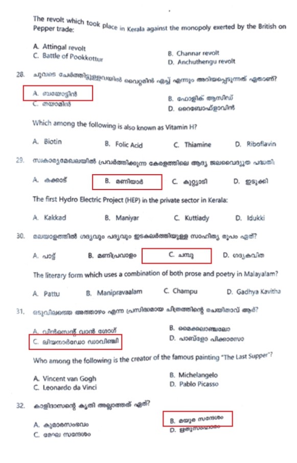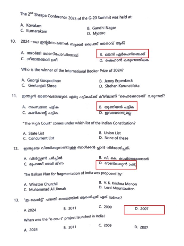 Download Kerala High Court OA 2024 Solved Questions PDF