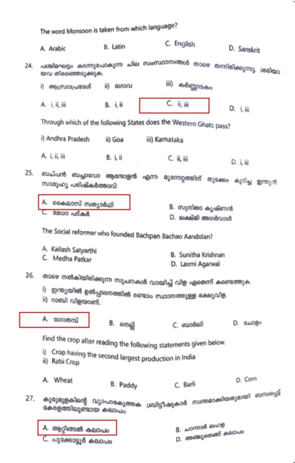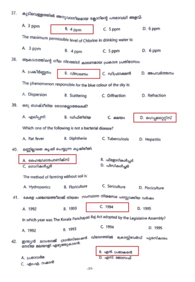 Kerala High Court Office Attendant Answer Key 2024, Check October 20 Exam Solved Question Paper Download PDF