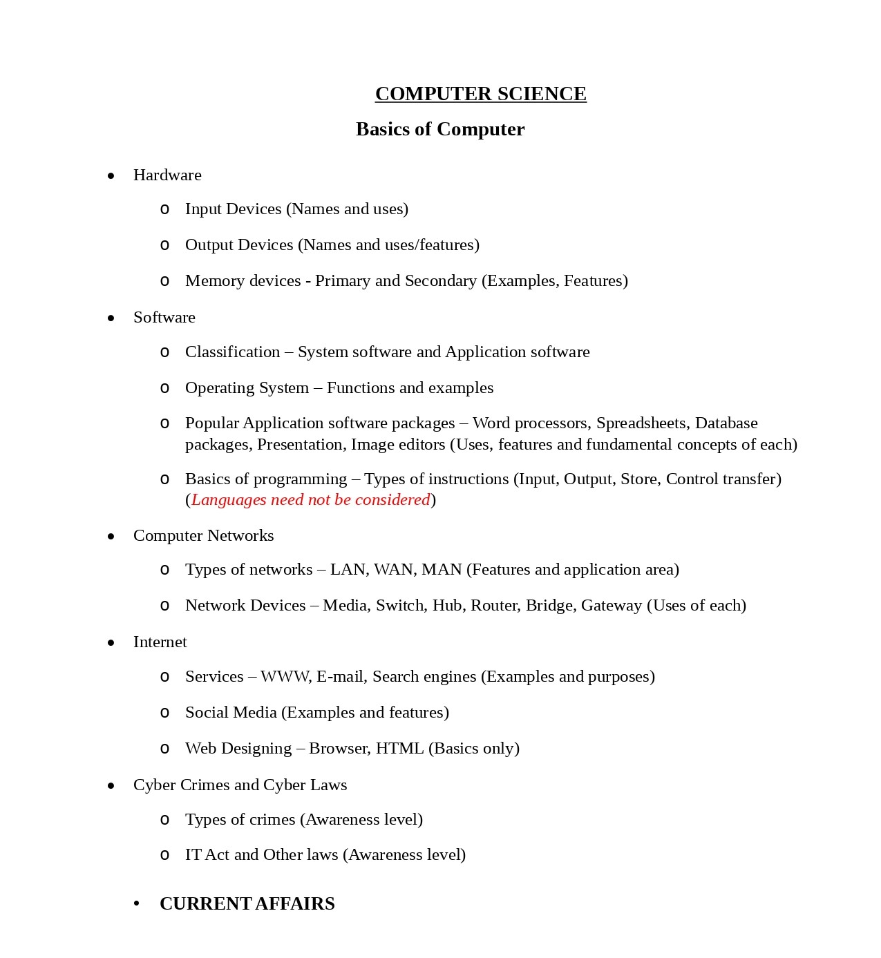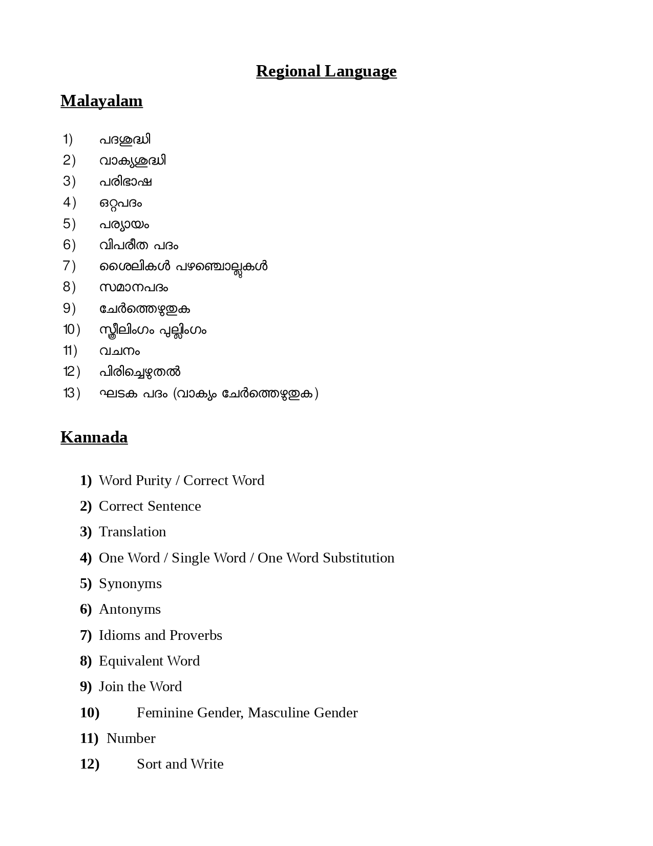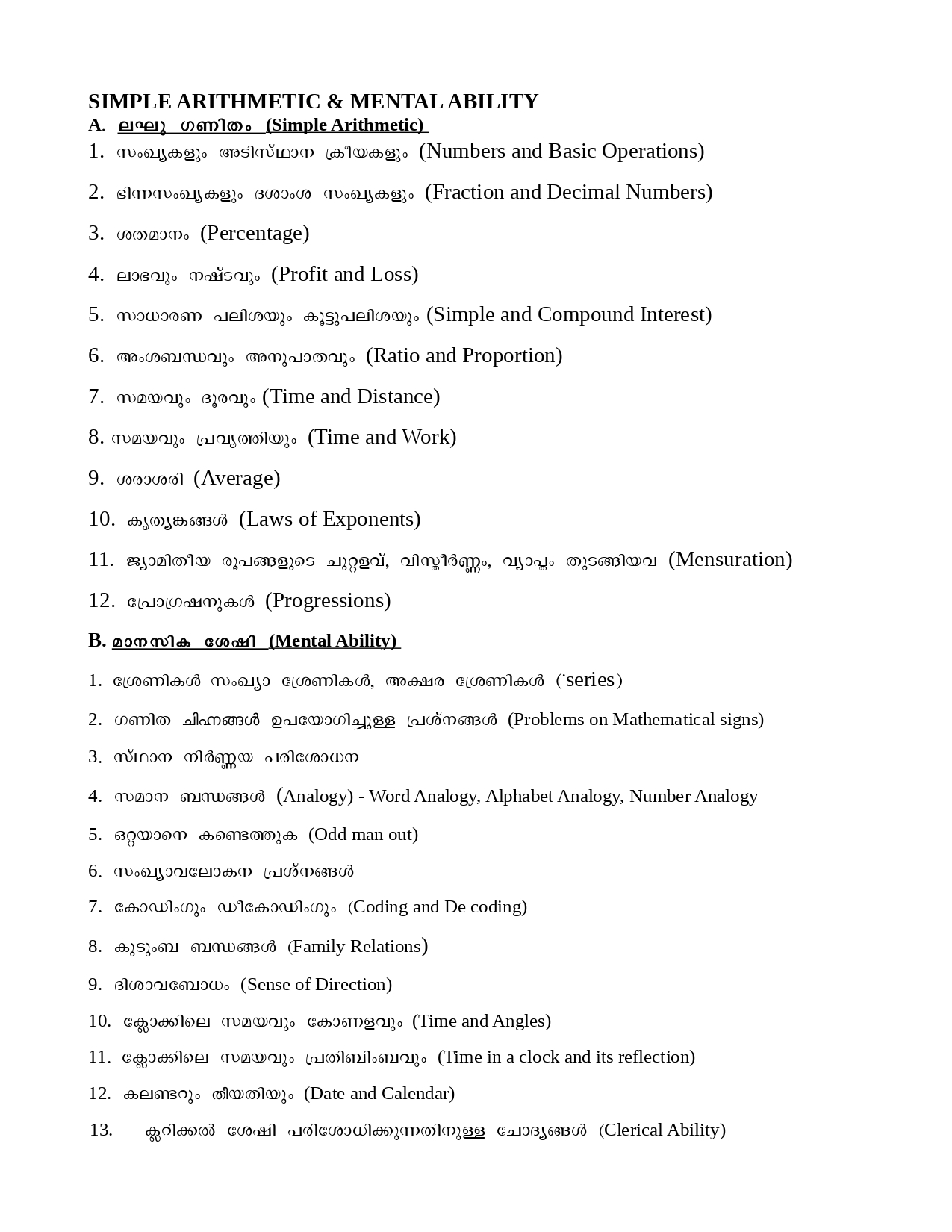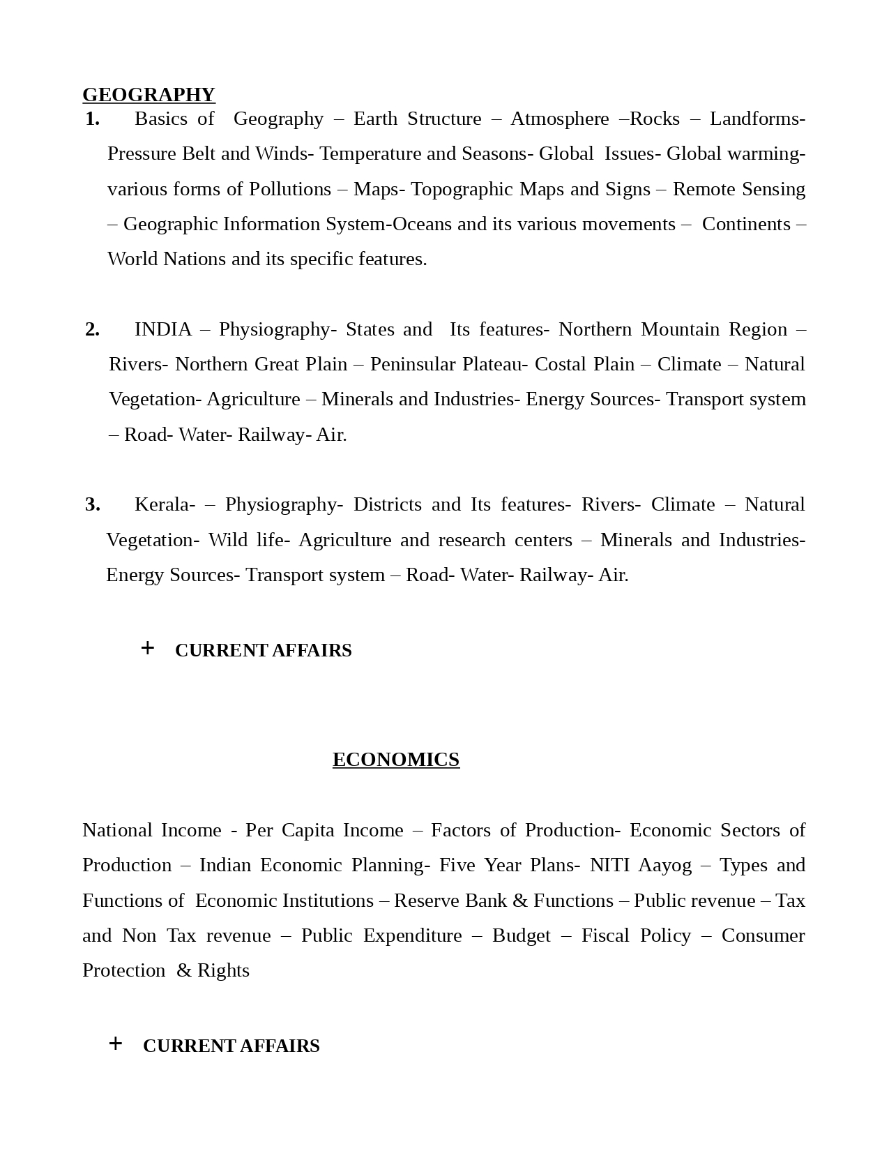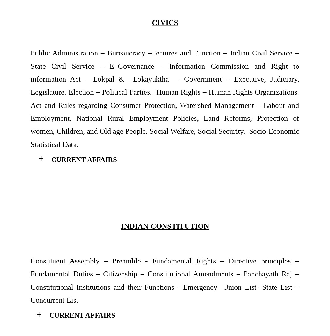 PSC Secretariat Assistant Syllabus