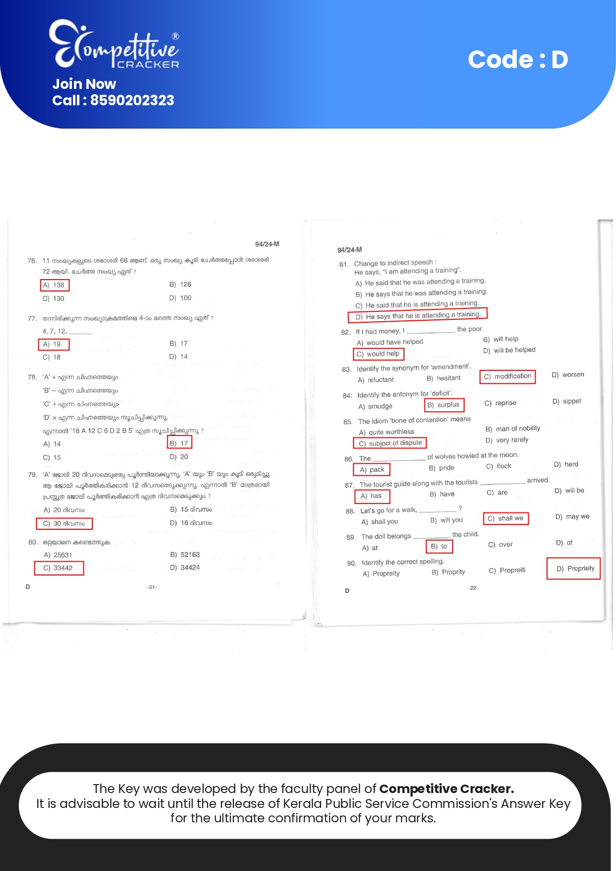 The online coaching for LDC by Competitive Cracker stands out by its peculiar learning strategies provided for the students. Candidates joining the LDC batches get to learn from the live and recorded classes. CC’s mentors are available 24/7 to clear your queries through CC Query Cracker program. Never attend another PSC exam with doubts and hassles any more. Faculties and the technical team bring the real interactive experience during classes simulating the offline classes. The community learning program, where you can meet and share the doubts in an open platform, such as official WhatsApp and Telegram groups by Competitive Cracker. Learn and achieve together with the ones who share your dream.