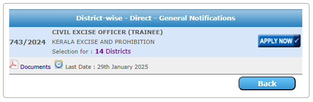 Civil Excise Officer (Trainee) - Part- II (By-Transfer) - Kerala Excise and Prohibition (Cat. No. 744/2024)