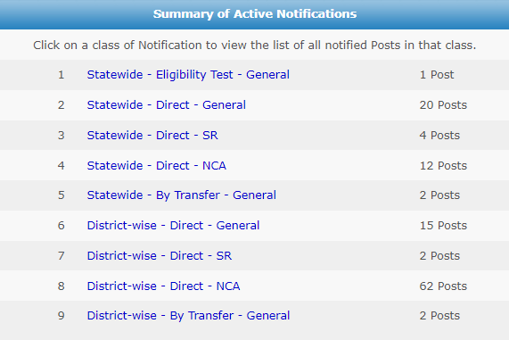 Candidates can see the notifications on the respective links. Click “Check Eligibility” button against each vacancy will show the if candidates is eligible, as per details entered during the profile creation. If the eligibility indicator against the respective categories read “Eligible” then the candidates can apply for the PSC examination.